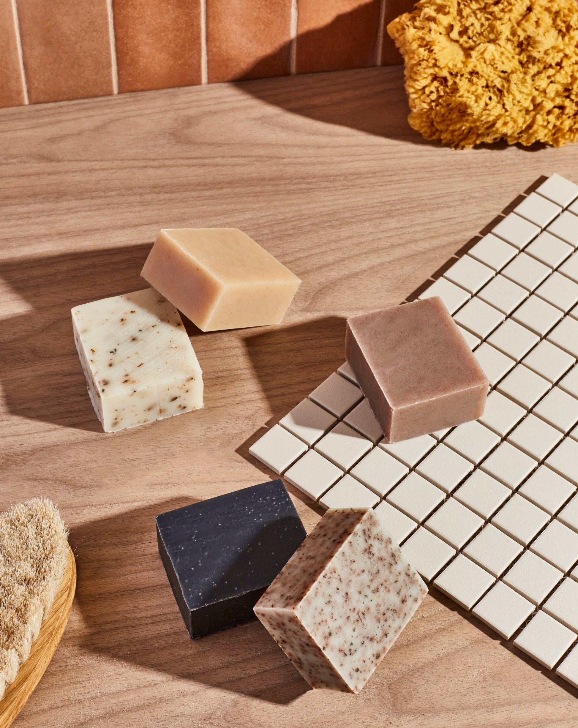 Ingredients: saponified olive, coconut*, sustainable palm*, and castor oils; shea butter*, rosehip powder*, rose geranium oil, mandarin oil (*organic)
